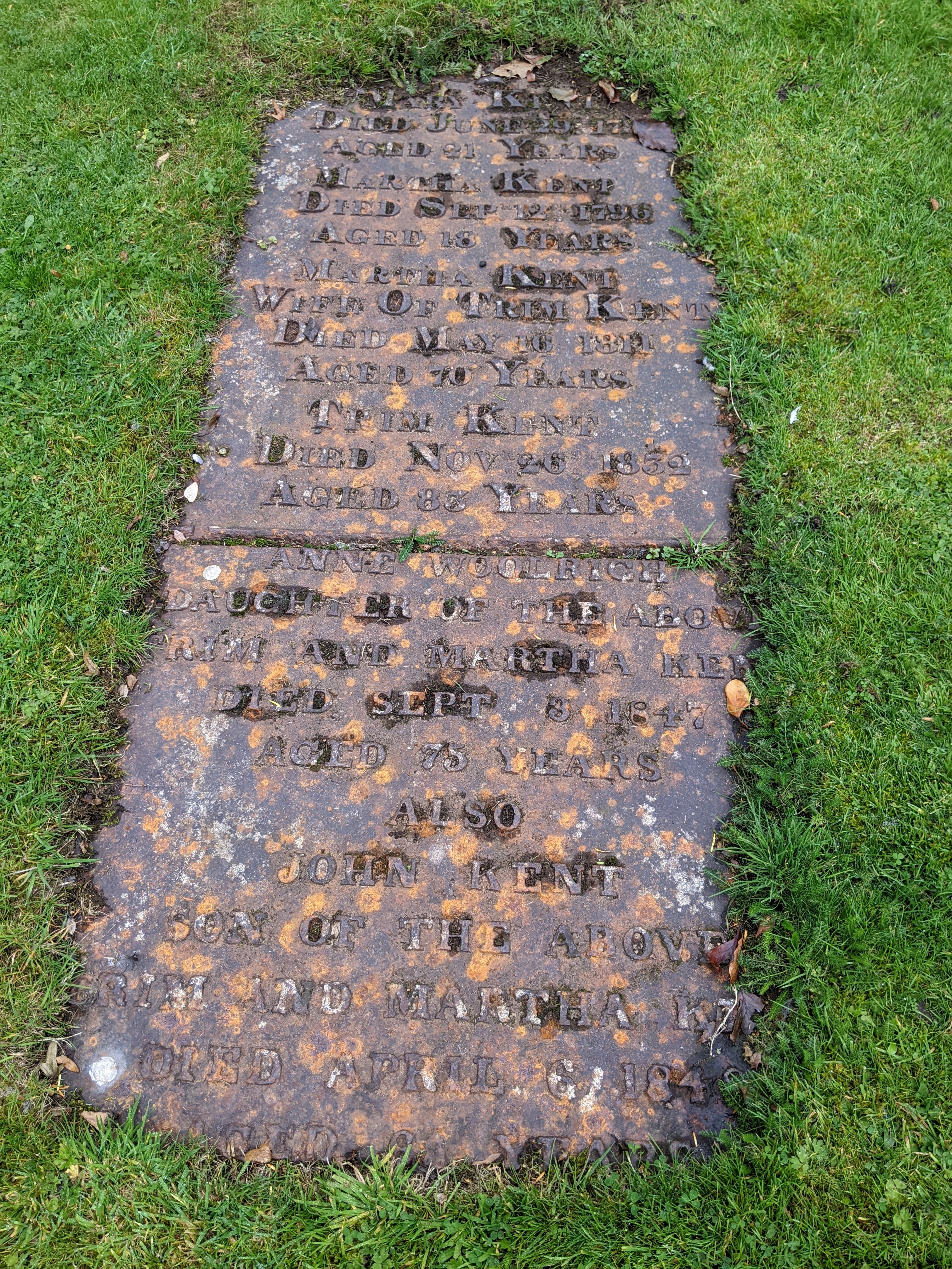 churchyard. These are most unusual, although there are one or two more at Coalbrookdale and Madeley churches. This one is a memorial to the Kent family, dated after 1848.