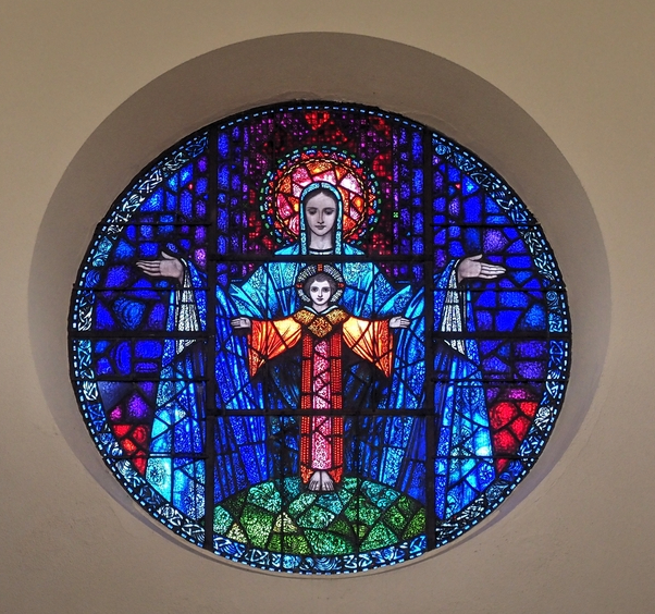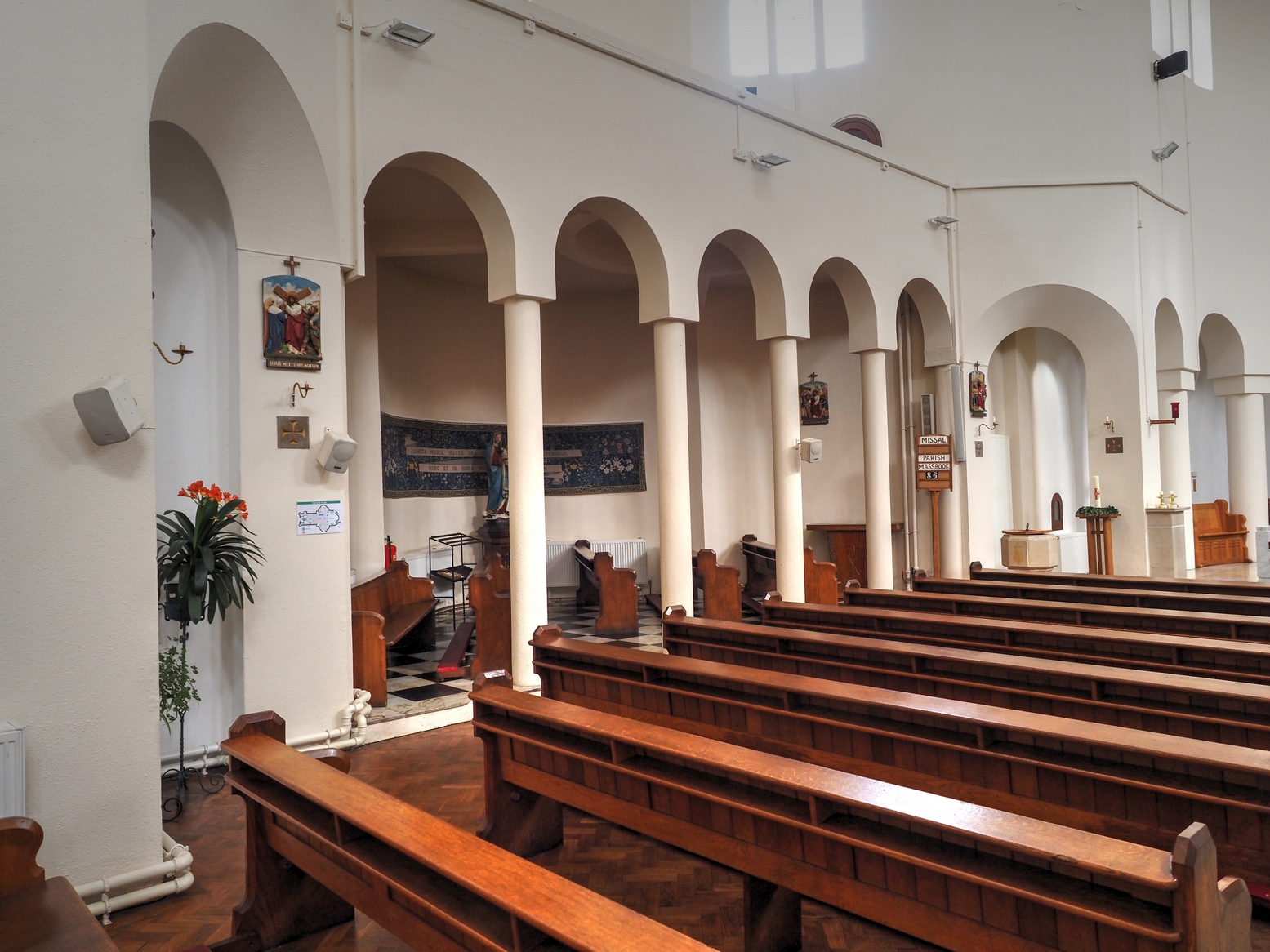 settled in Conwy and designed several Catholic churches in Wales and England. It was built in reinforced concrete faced with stone and has Byzantine and Romanesque influences.