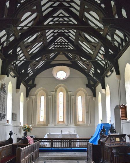 A quotation from a newspaper article of 1856 states “the stained glass windows at the east end are splendid specimens of the art. .... we never saw such richness of colour and beauty of design combined”. The west window has been filled with amber coloured glass, and throws a warm glow over that part. They came from the establishment of Messrs Horwood Brothers.”