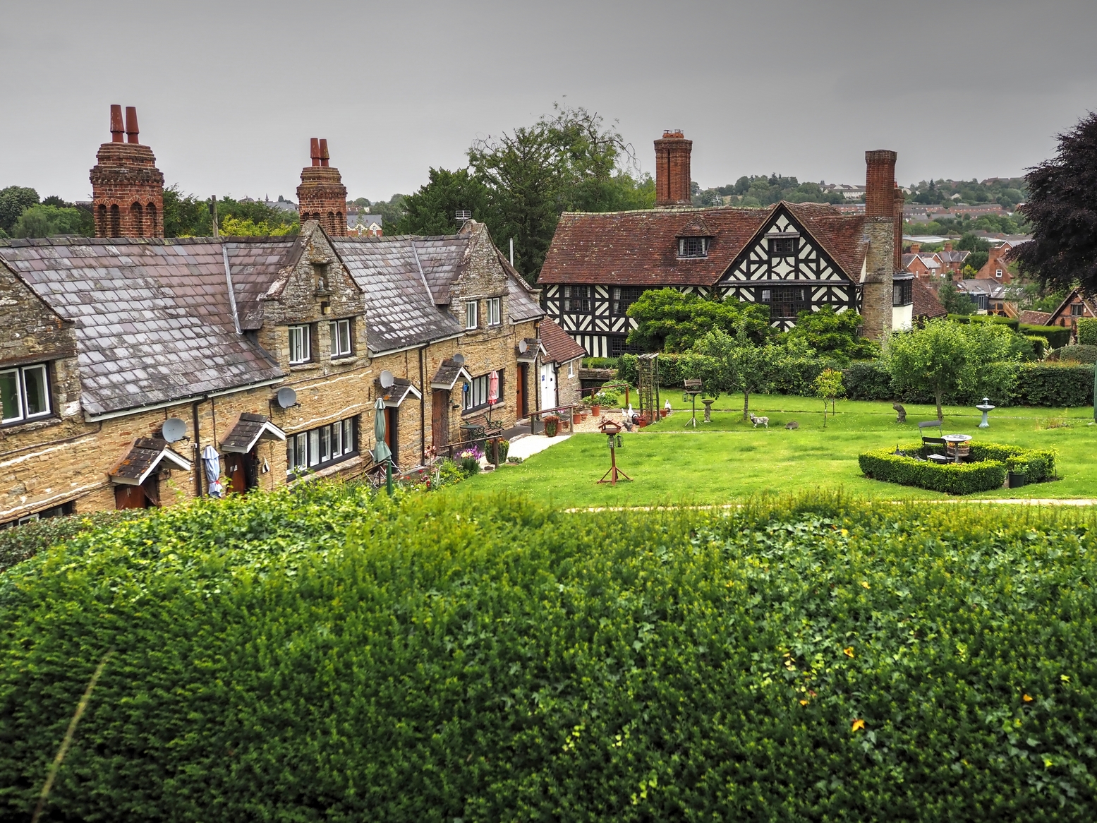 rebuilt the almshouses on the left of the path up to the church.