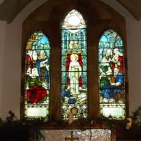 Small, attractive church in a peaceful valley, nestling between the Long Mynd and Ratlinghope Hill. Established in 1209 as a priory church linked to the Augustinian abbey at Wigmore. Restoration works in 1905, when Arts and Crafts windows by James Powell & Sons were installed. In the churchyard, you will find the grave of the last known Sin-Eater in the region - read here for more information.