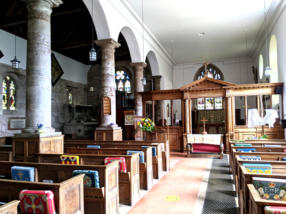 Evidence of the 18th century work can be seen in the southern wall and its large, clear, round headed windows, and also in the Tuscan columns of the north arcade and the flat, plastered ceiling. The pulpit is also 18th century. The screen is more modern, being added in the early 1900s.