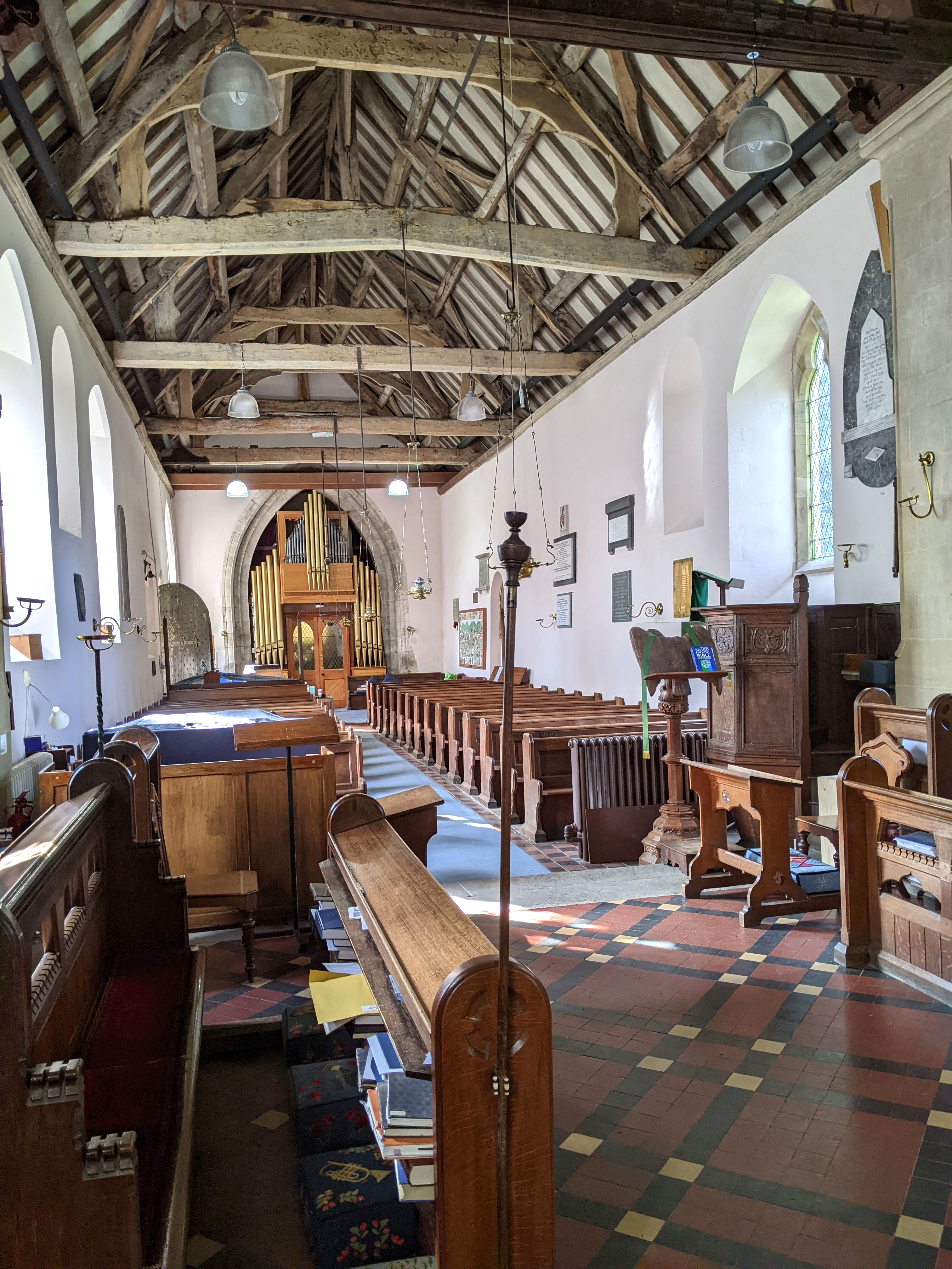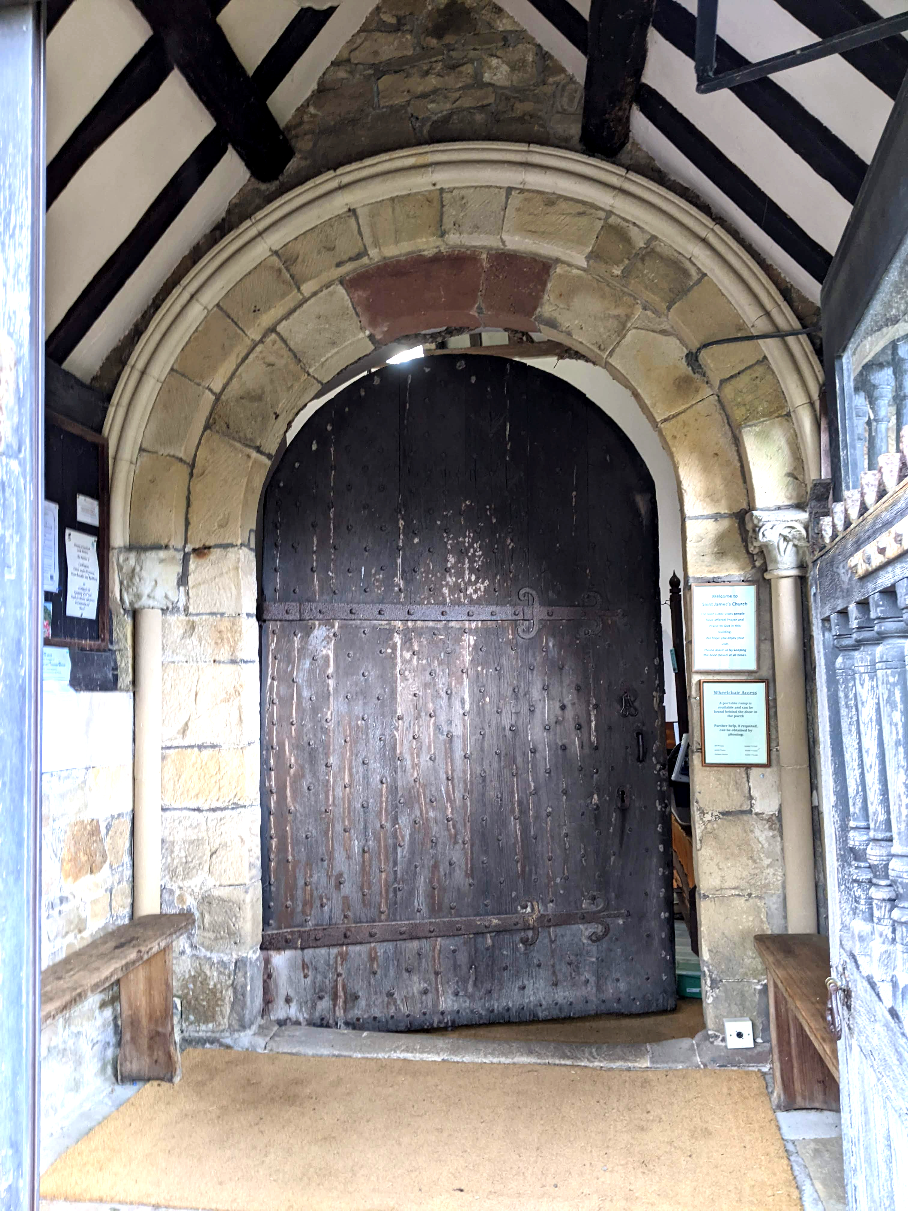 The eastern side of the nave is 12th century, the chancel and tower are Early English. The sturdy porch is dated from 1639 and the great door 1648. The doorway itself is late Norman.