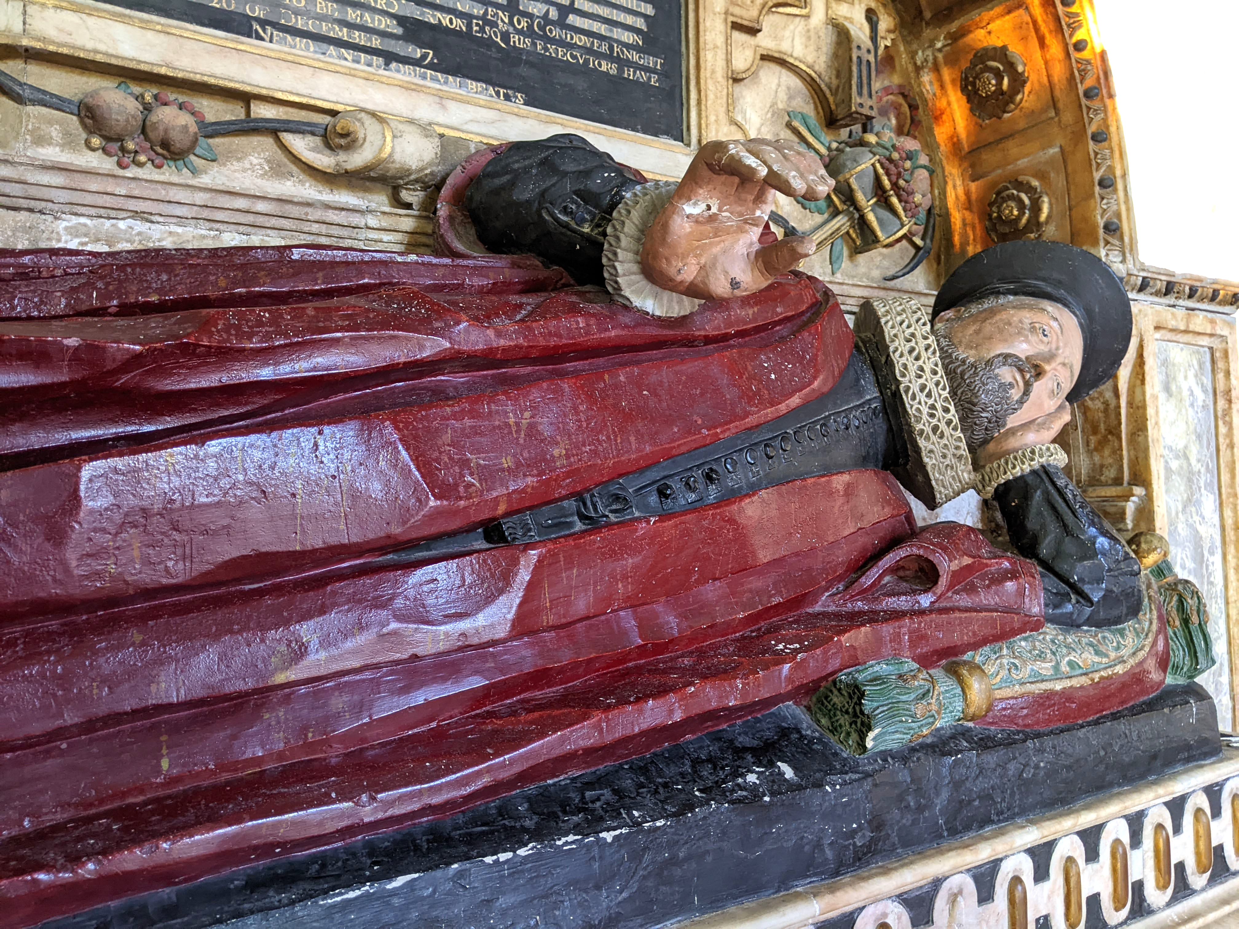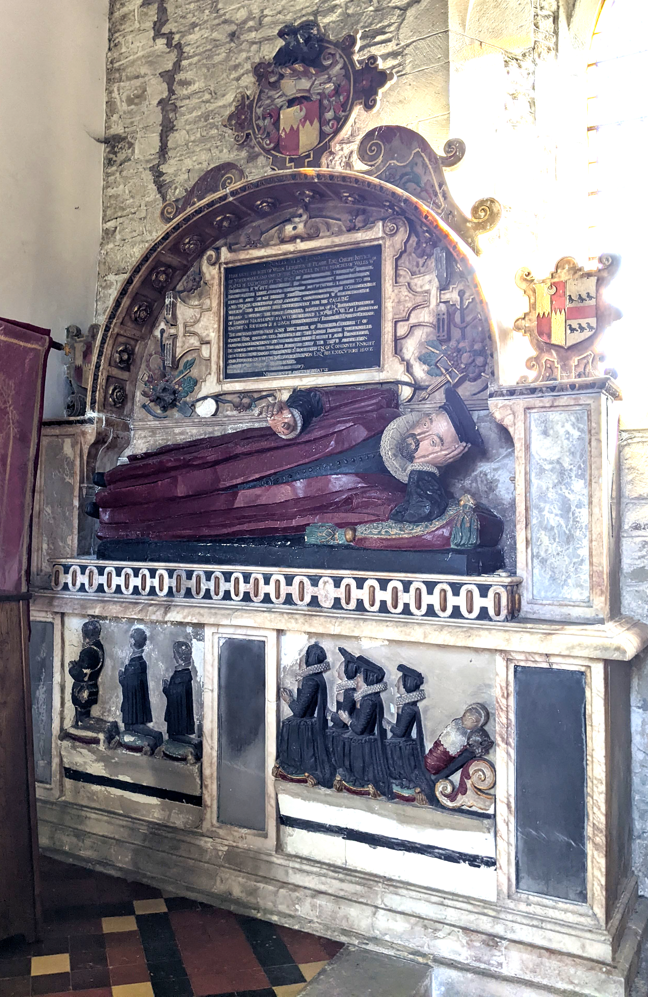 There is a striking monument in the chancel to Chief Justice Leighton, d.1607 It is the earliest in Shropshire to show the deceased lying on his side. He was known, at least locally, as the 'Hanging Judge'. His children are lined up below.